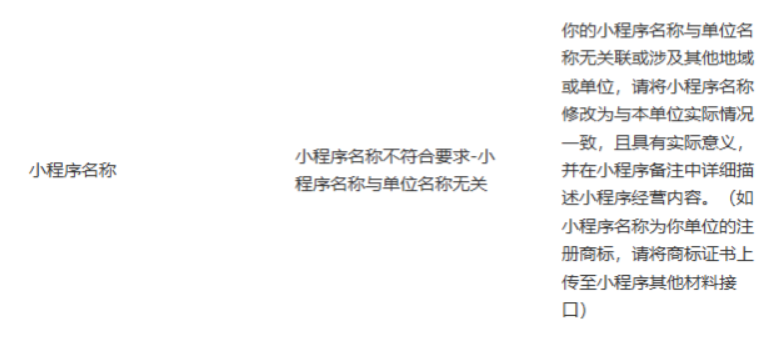 你好,小程序名称需要与备案主体性质相符合,如是单位商标等,请在备注中说明小程序名称与单位的关联性,并提供对应的证明文件,审核人员会根据您提交的资料再次核实,如无法提供,建议自行修改跟主体有关联的命名。