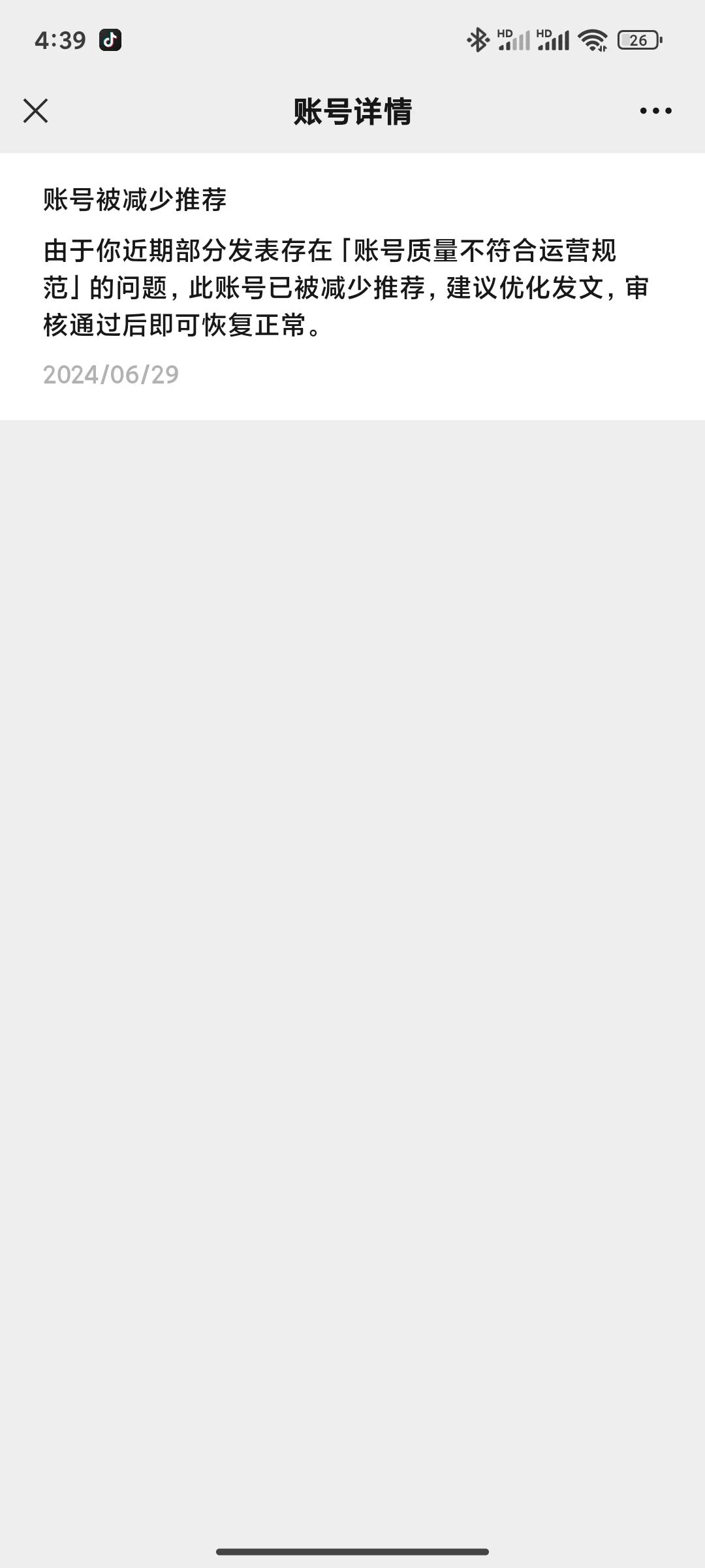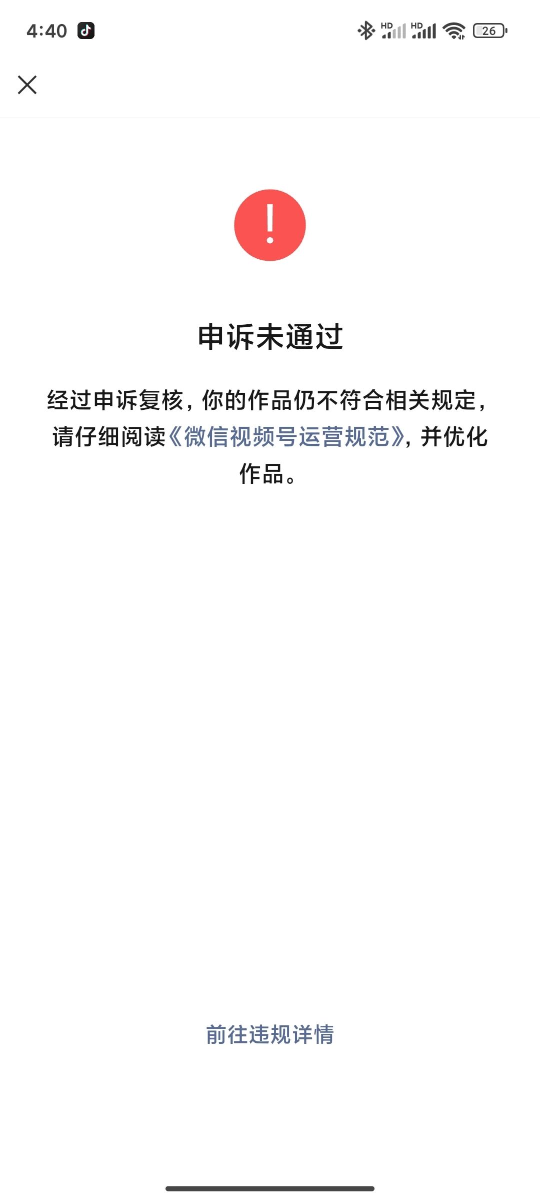 现在的是根本不知道违规在哪里,其他平台好歹也会告诉哪条作品违规。之前有另一个号的,也是这情况,无头无脑就说不符合,后面重新注册了一个,才发了7个视频,有一个开始爆了就突然减少推荐。反馈问题好像都是发几个条款给我,根本不讲问题在哪,这样子再注册也还会遇到,内个平台都有自己的规则,这个我们都懂,但是明确指出问题也应该是常识吧!