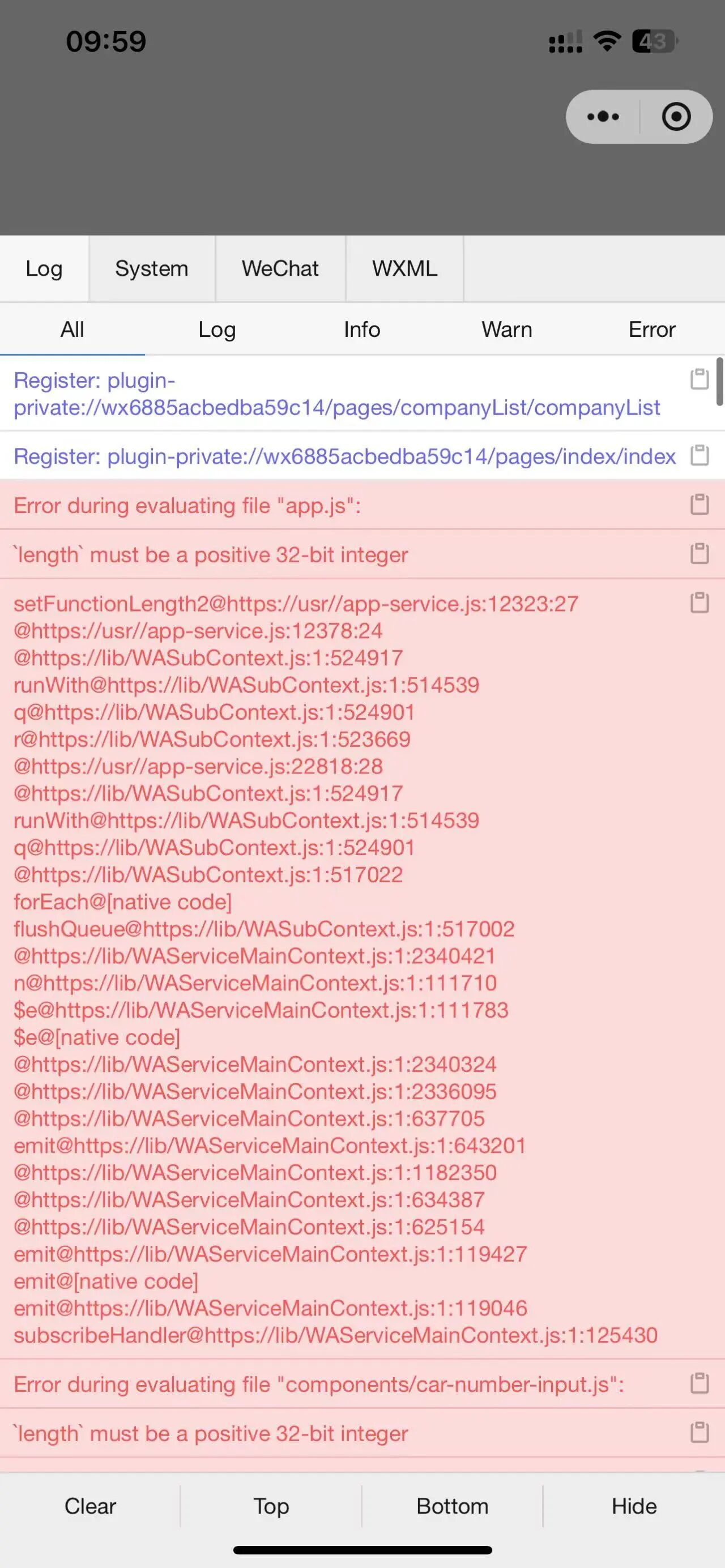 小程序使用快递100插件后,预览时会报Error during evaluating file xxx.js错误,在app.json中去掉plugins配置就不会报错了,一引入就报错。