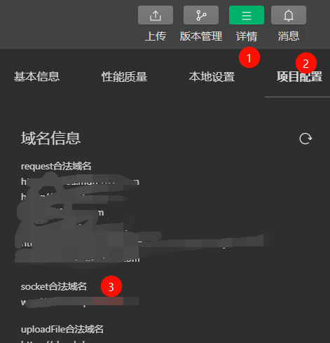 在 「Socket 合法域名」 添加:对应的域名,一定要和项目中使用的域名保持一致。