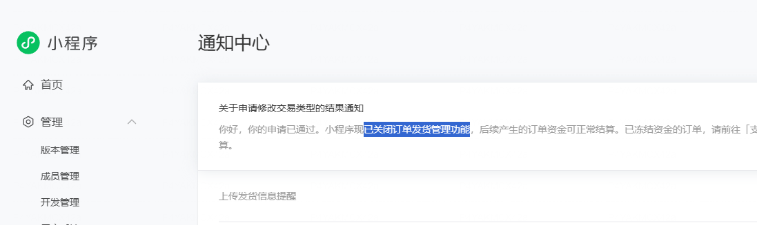 申请关闭,最终结果是,官方将订单发货管理改为了“线上服务类”,并没有真的关闭
