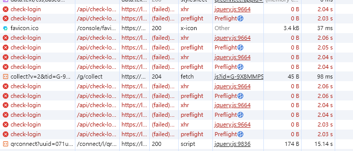 问题一:如标题描述,在check-login时,需要尝试失败后才走longpull;check-login期间扫码登录,需要等待一段时间;
