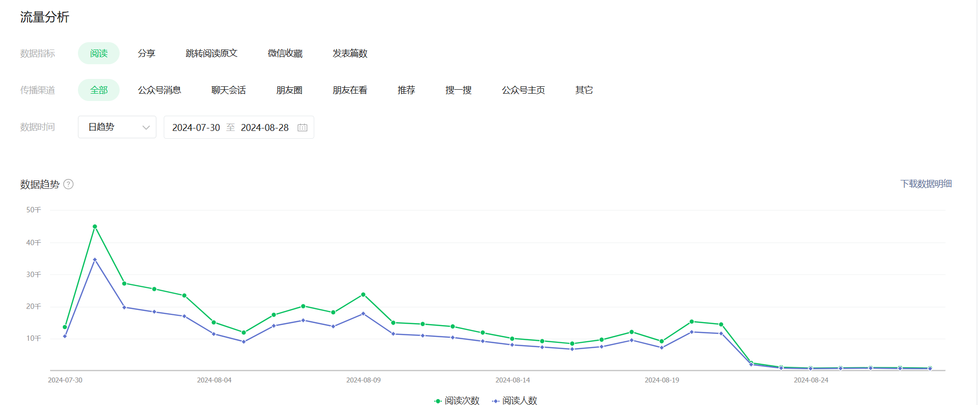 公众从日均阅读1W+,突然沉降到谷底,目前只有几百。