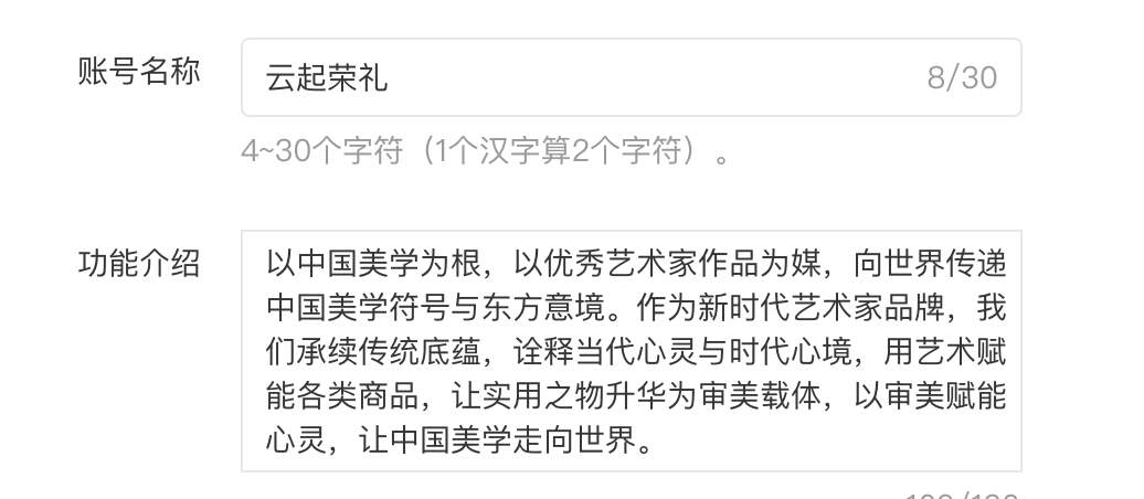 注册提交认证的中文“云起荣礼”,为什么认证成拼音的了?还把公众号名字都改了。