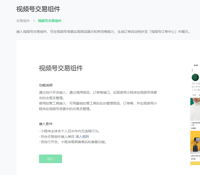 请问一下我的小程序视频号交易组件怎么开通,我这边没有开通的入口,小程序APPID:wx497bf1ada88df10d