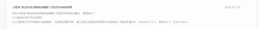你好,经核实,贵方小程序涉及个体餐饮场所提供点餐、外卖服务,请补充选择餐饮-餐饮服务场所类目,并在基础信息处申请该类目,通过资质审核并在配置功能页添加符合该类目的功能页面。