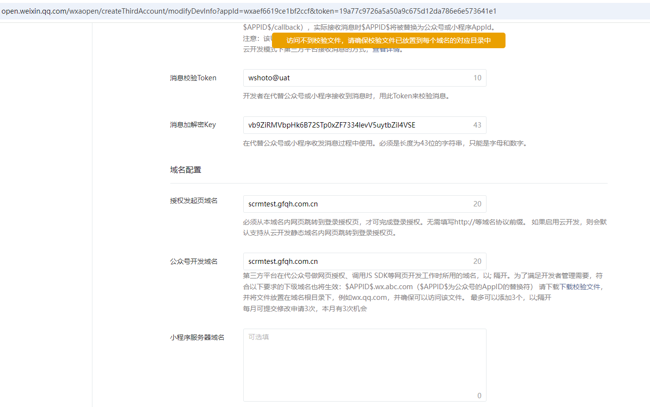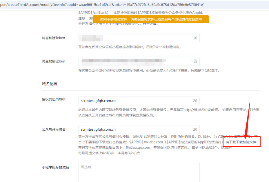 你好,请尝试清缓存、换浏览器登录或者自查是否拦截微信方IP,再重新配置下,点击页面的下载校验文档按钮重新下载文件。