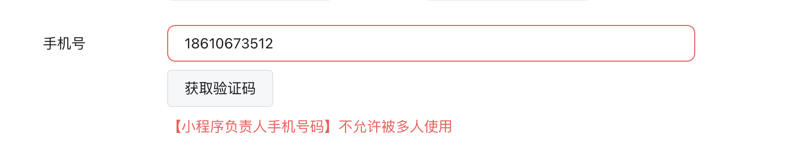 提交小程序备案的时候提示:【小程序负责人手机号码】不允许被多人使用,