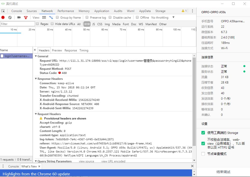 真机调试时在oppo-A59s 手机机型上 request请求报400错误 在其他手机上正常 详情可见截图