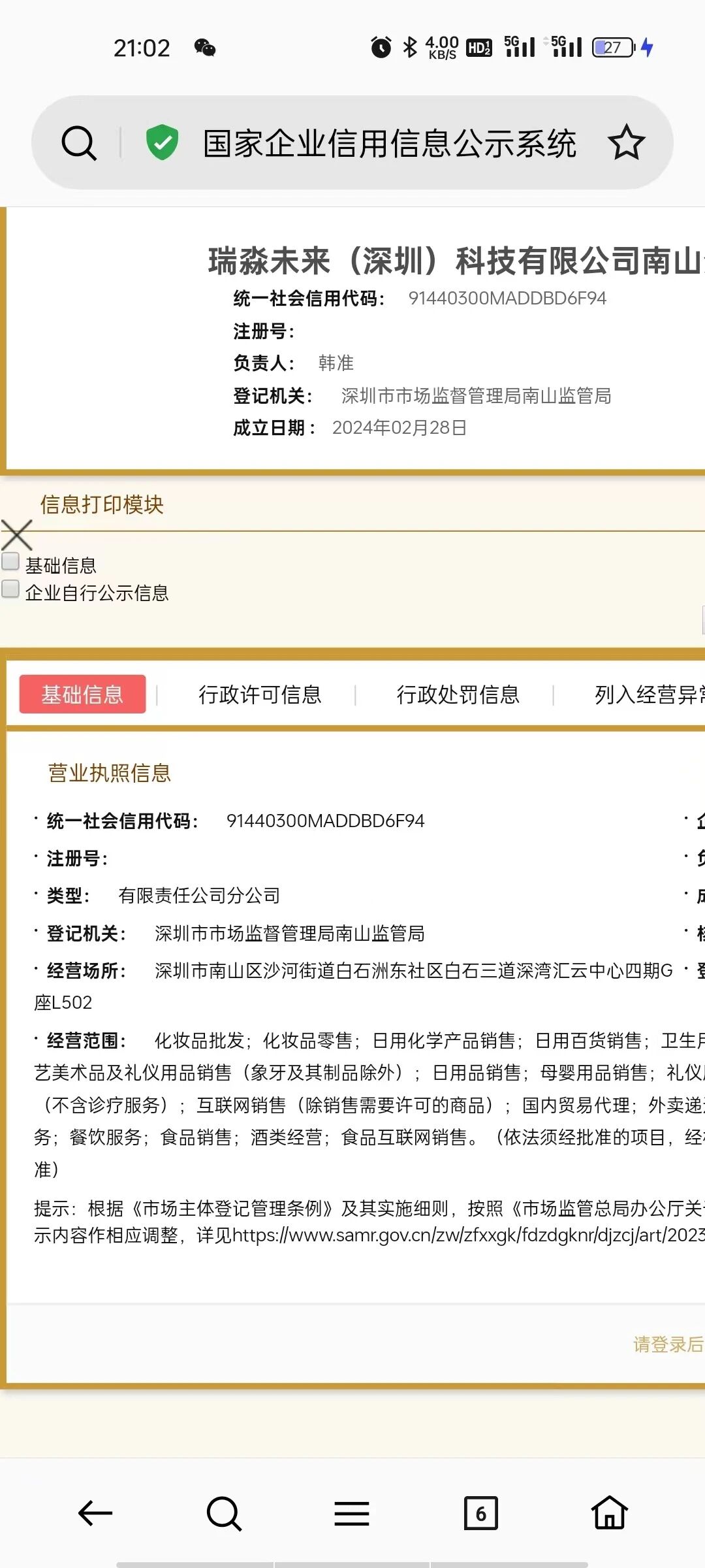 主体名称:瑞淼未来(深圳)科技有限公司南山分公司