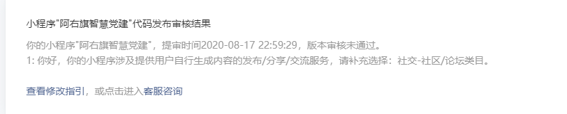 您好,我们的小程序是党团组织类目,上线以来一直未遇到审核问题,昨天晚上做了一点ui更新,再提交审核时提示
