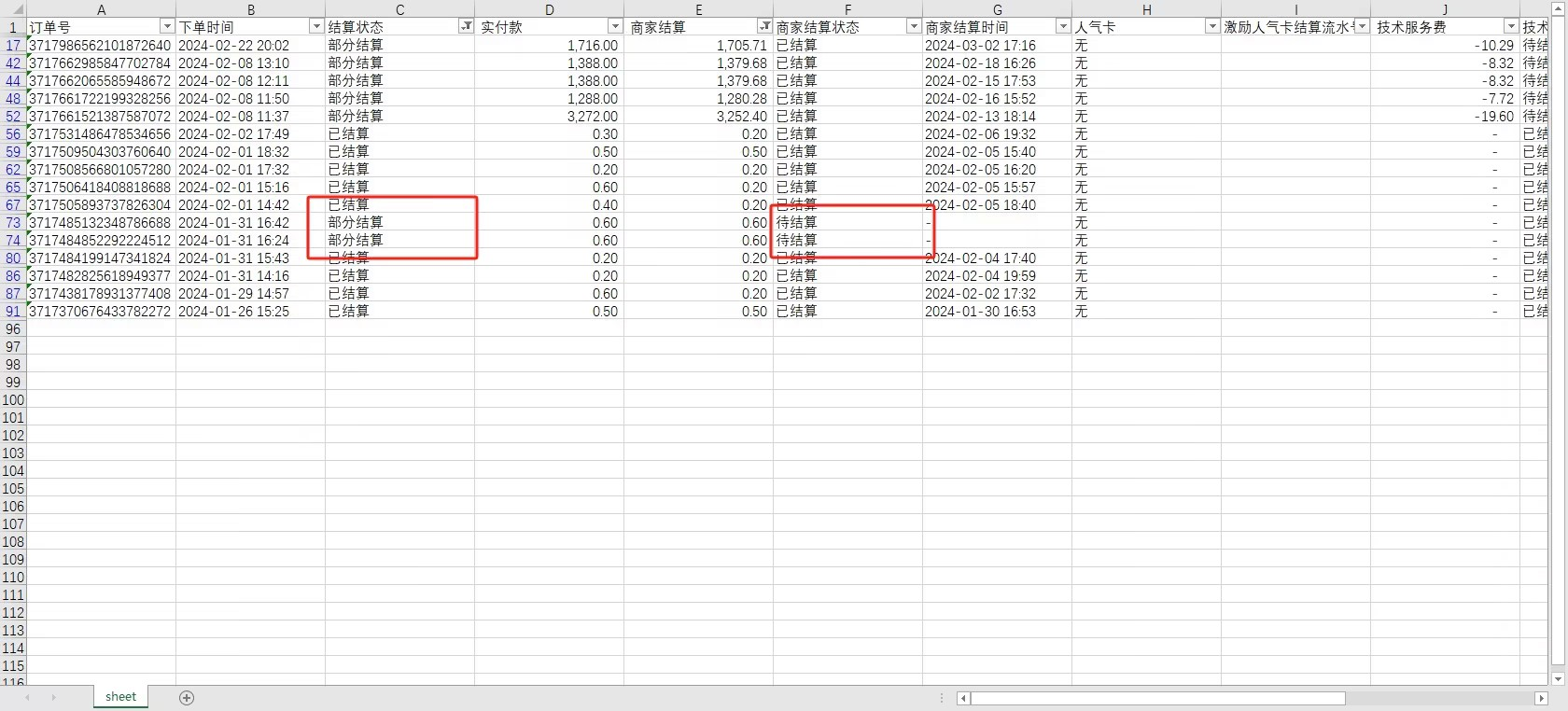 小店后台---资金结算---订单流水导出订单列表后,无结算时间的,