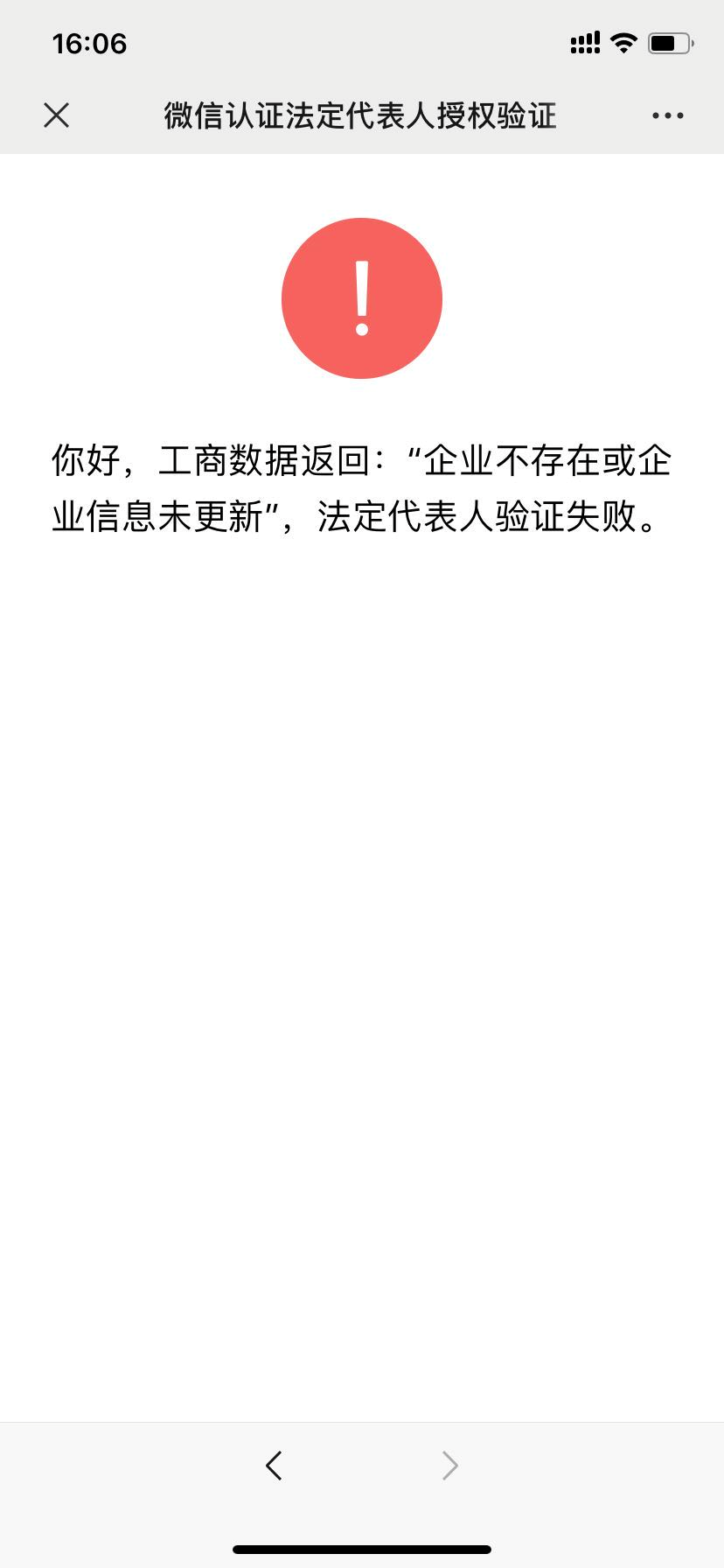 新注册的企业公众号,微信认证联系人认证时二维码一扫就显示“企业信息或法定代表人信息不一致”。这个是什么问题啊?