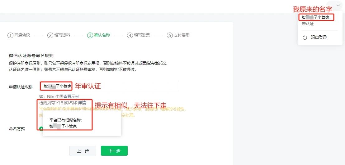 微信小程序个人微信认证时,提示【已检测到一个相似的名称】,而这个名称正是我发布过的小程序名称,我还不能用这个名称了吗?那要我怎么认证啊?是官方误判了吗?接下来我应该怎么做?