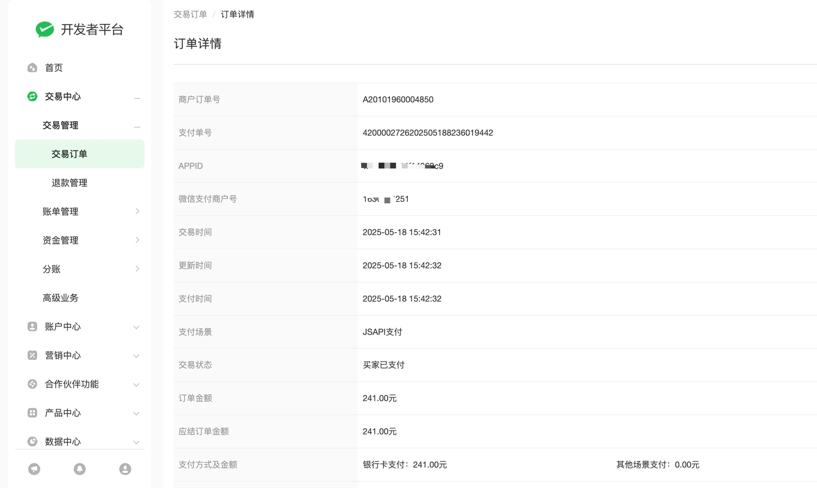 但是我去微信支付开发者后台能查到用户已经支付了。截图如下: