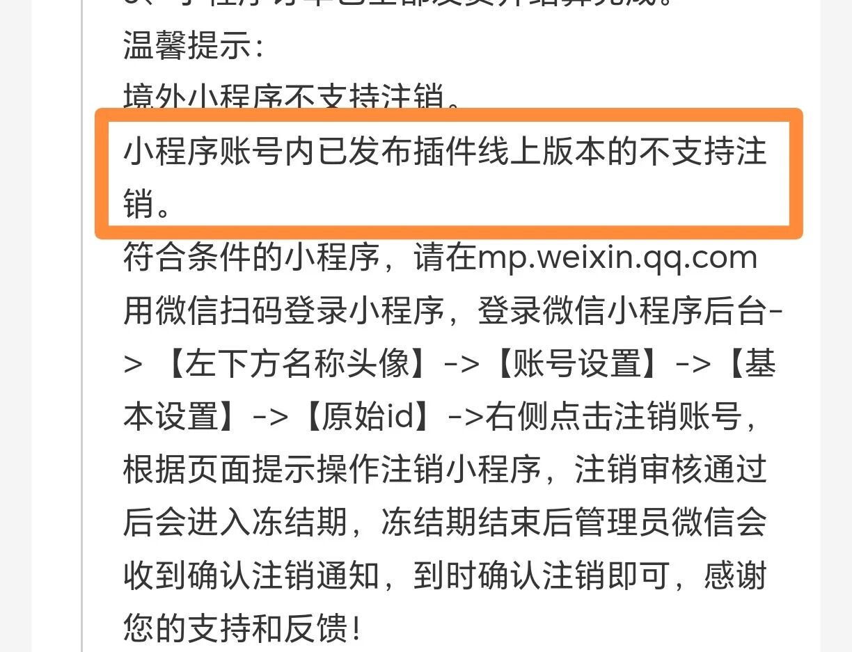 我的小程序已下线多年,主体也已注销,近期想注销小程序,注销流程里提示:小程序账号内已发布插件线上版本的不支持注销。我删除直播组件提示“禁止删除”,请问我不删除直播组件能否可以注销小程序。(小程序是第三方开发的,已停止服务多年)