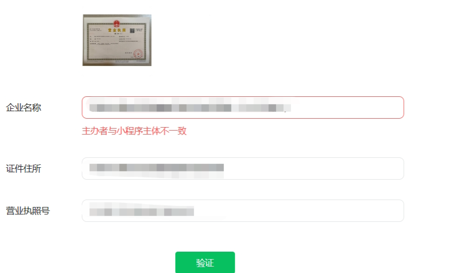 小程序备案,个体户,原来没有名称,现在重新换了新的营业执照了,但还是提交不了?