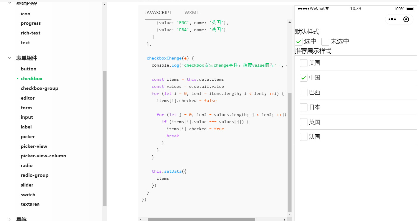 文档上有https://developers.weixin.qq.com/miniprogram/dev/component/checkbox.html
