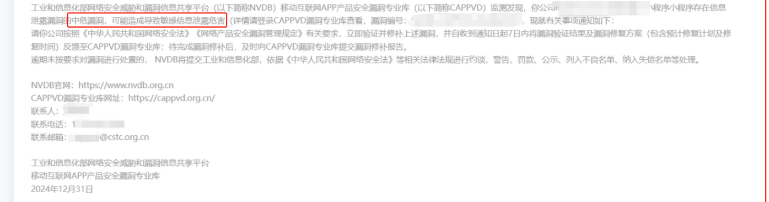 看到有一条安全漏洞通知单,小程序是2月份有发版更新上架的,不知道这个通知单是不是和小程序版本有关?