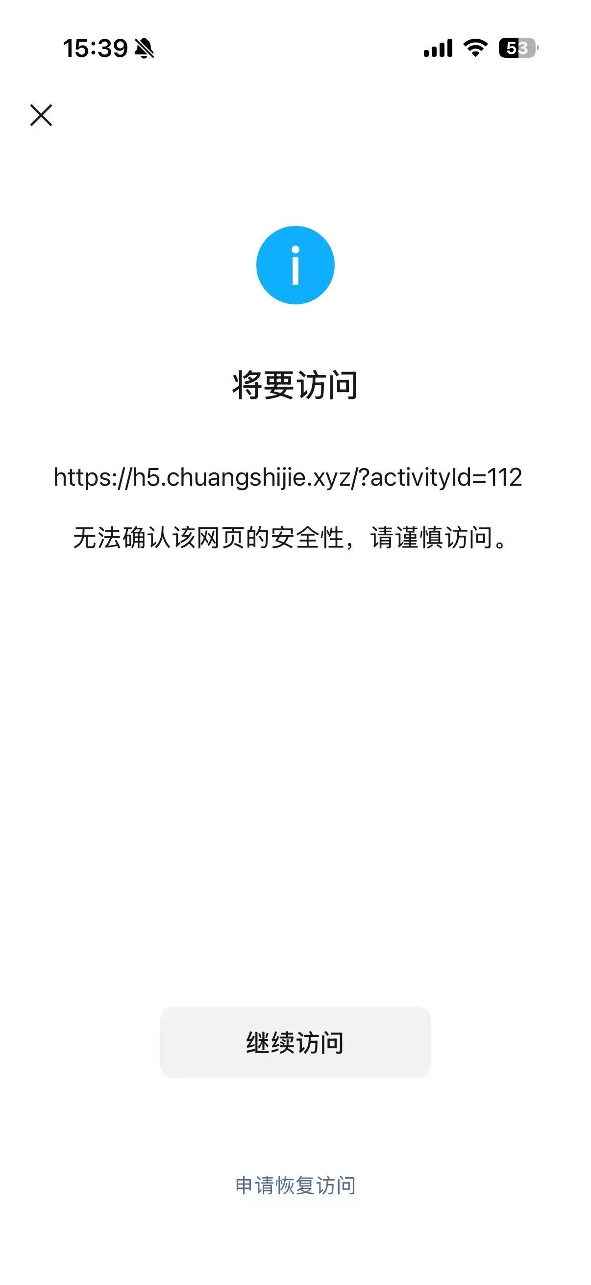 你好我请问一下我的域名备案完成 为什么点击打开h5链接还需要申请访问呢?