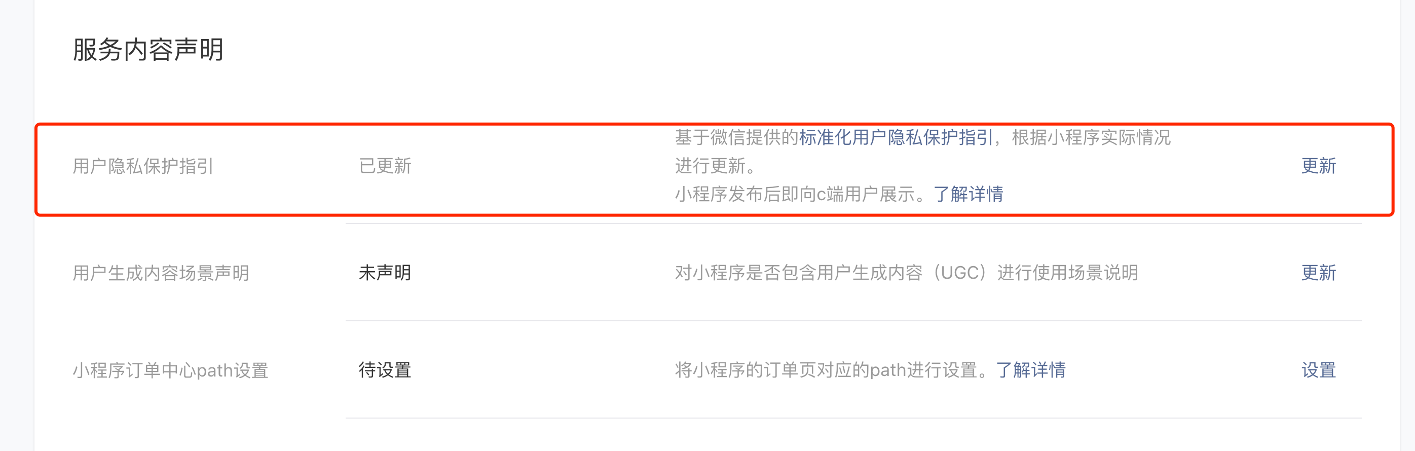 解决了,如果没有发布过小程序,则更新隐私协议无效。就等于是你更新100遍都没用,这可能是他们的一个BUG(不发布不能更新,给个提示也好啊)。