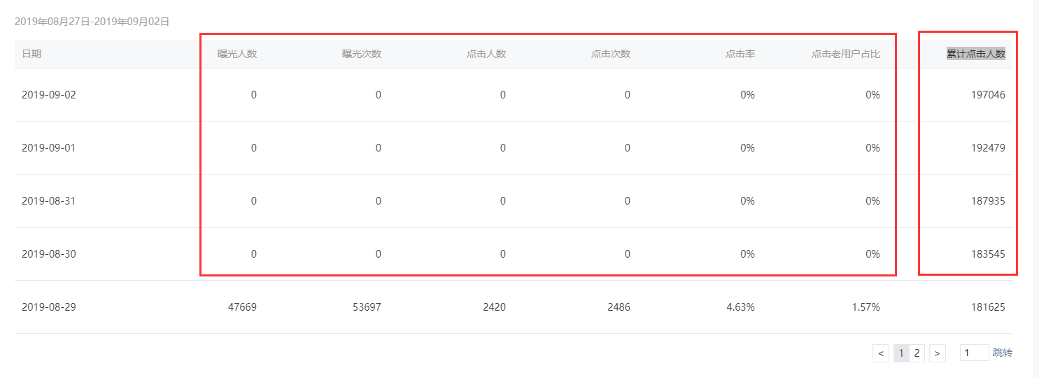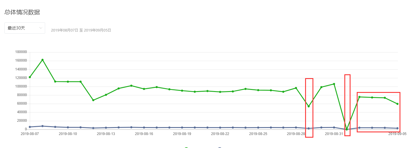 8月29日数据统计异常,少了一半左右。9月1日数据统计异常,完全无数据。9月2日开始的数据比出现问题之前的数据少了很多,不确定是否为统计异常所导致。