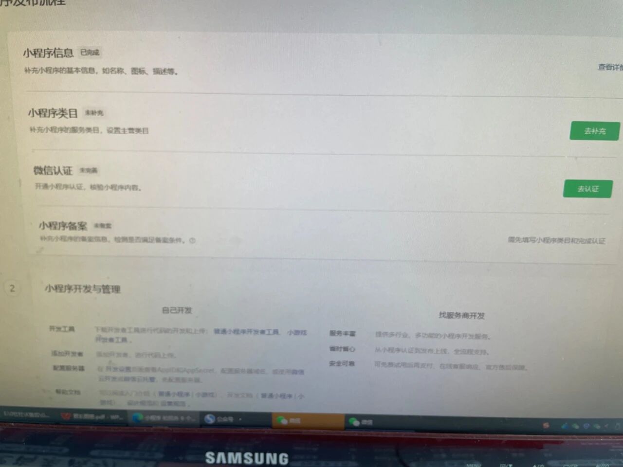 新规,小程序不能复用已认证的公众号的资质了,新注册的小程序需要独立认证,认证完,记得备案