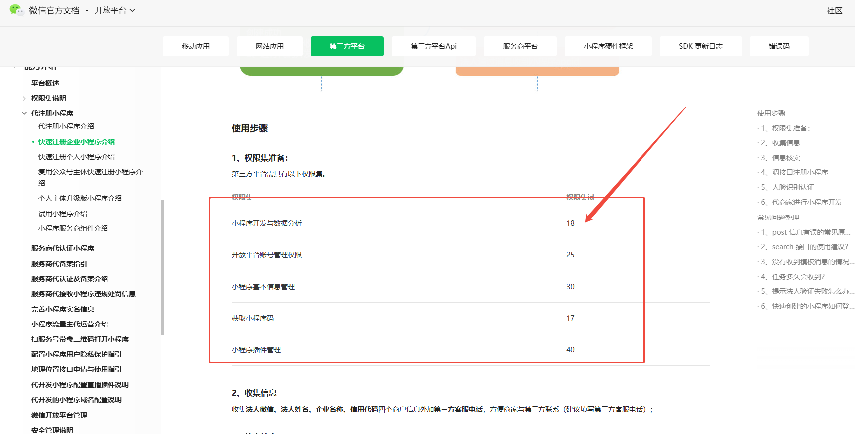 你好,请检查是否具备以下权限集且勾选这些权限集后第三方平台账号需要全网发布生效 https://developers.weixin.qq.com/doc/oplatform/Third-party_Platforms/2.0/product/Register_Mini_Programs/Fast_Registration_Interface_document.html