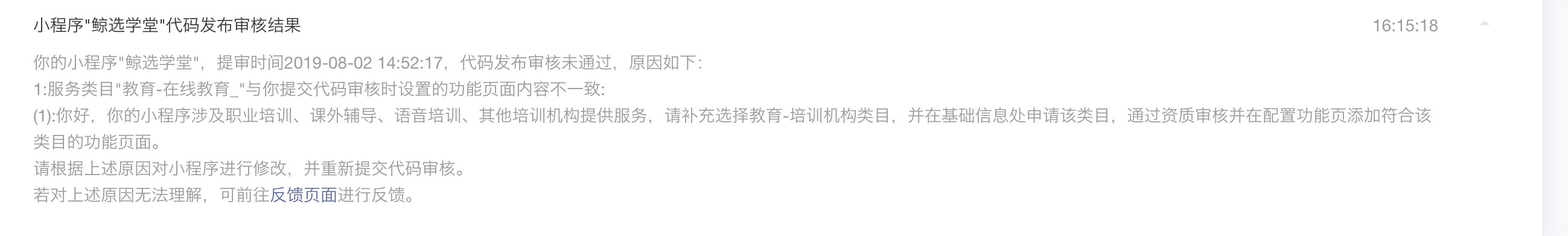 麻烦问下审核大哥,我们这款小程序是用于在线教育平台的平台介绍,宣传展示的小程序。并不涉及线下培训,也无线下培训。一直让选择未通过。还请麻烦处理一下。