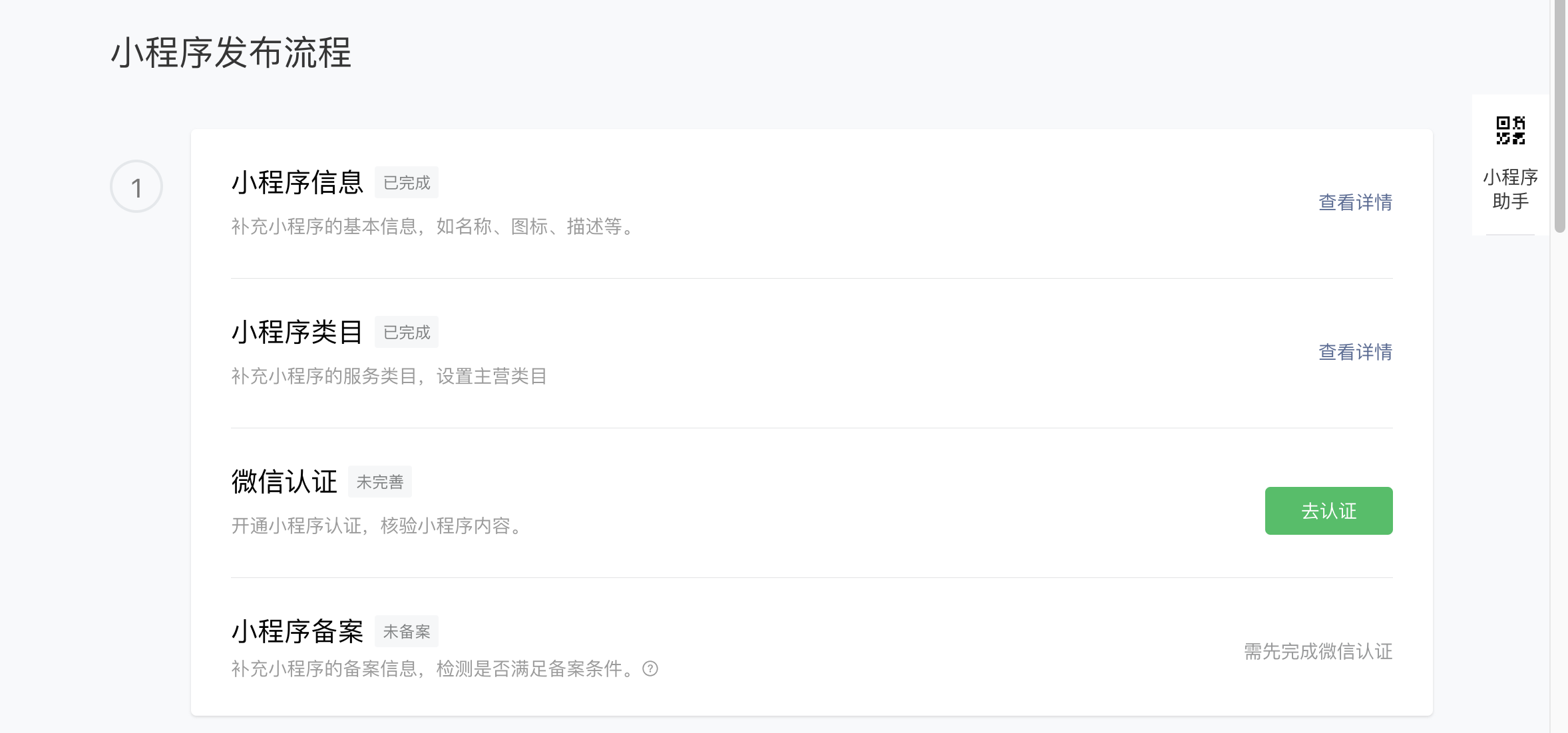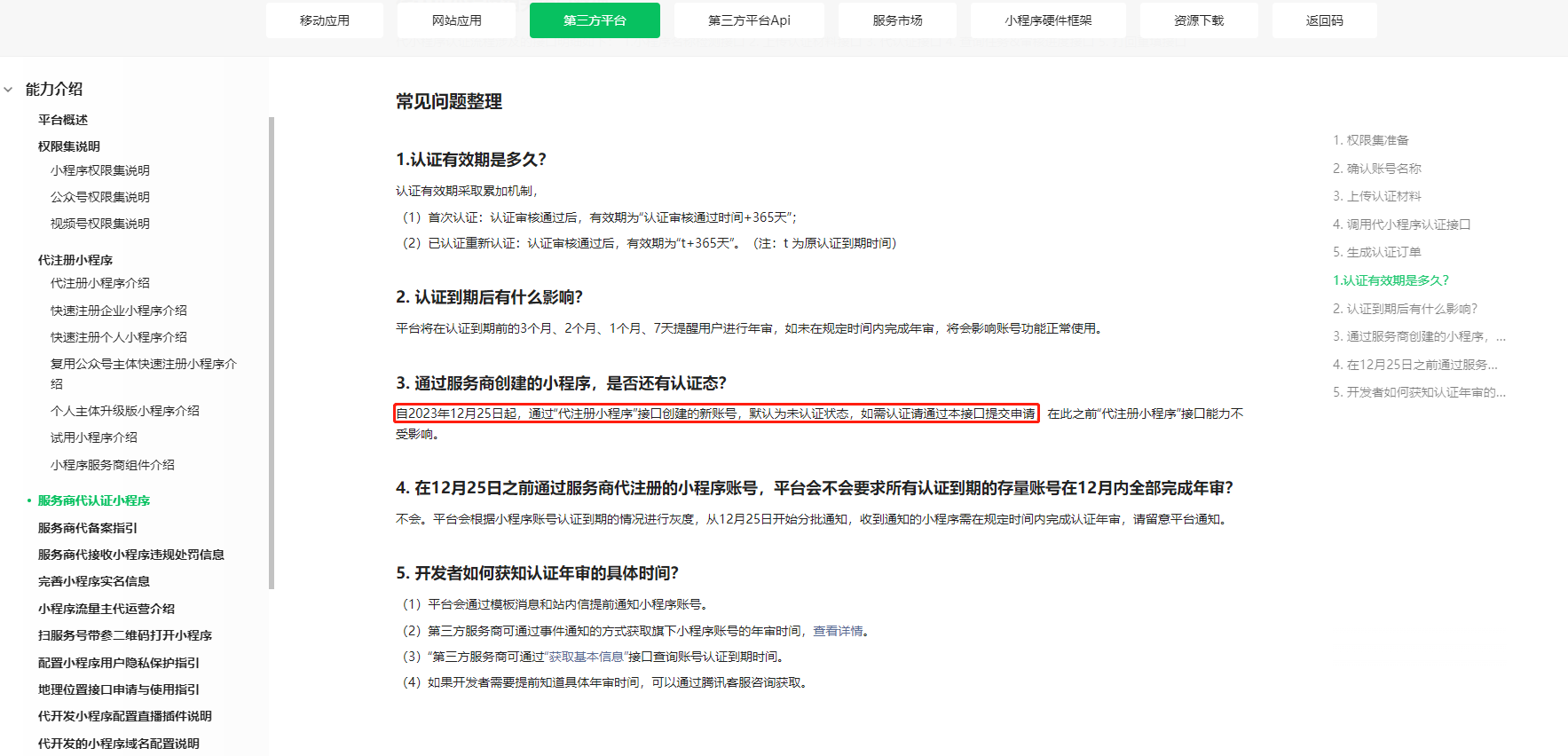 2024年1月7日通过快速创建小程序接口的表示需要微信认证。