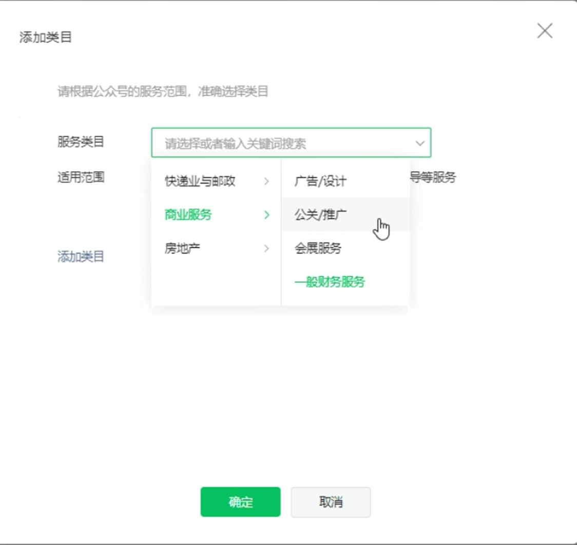 你好,目前服务号境外主体仅开放部分类目,其他类目暂未开放,暂不支持申请,建议可先选择目前开放的类目。