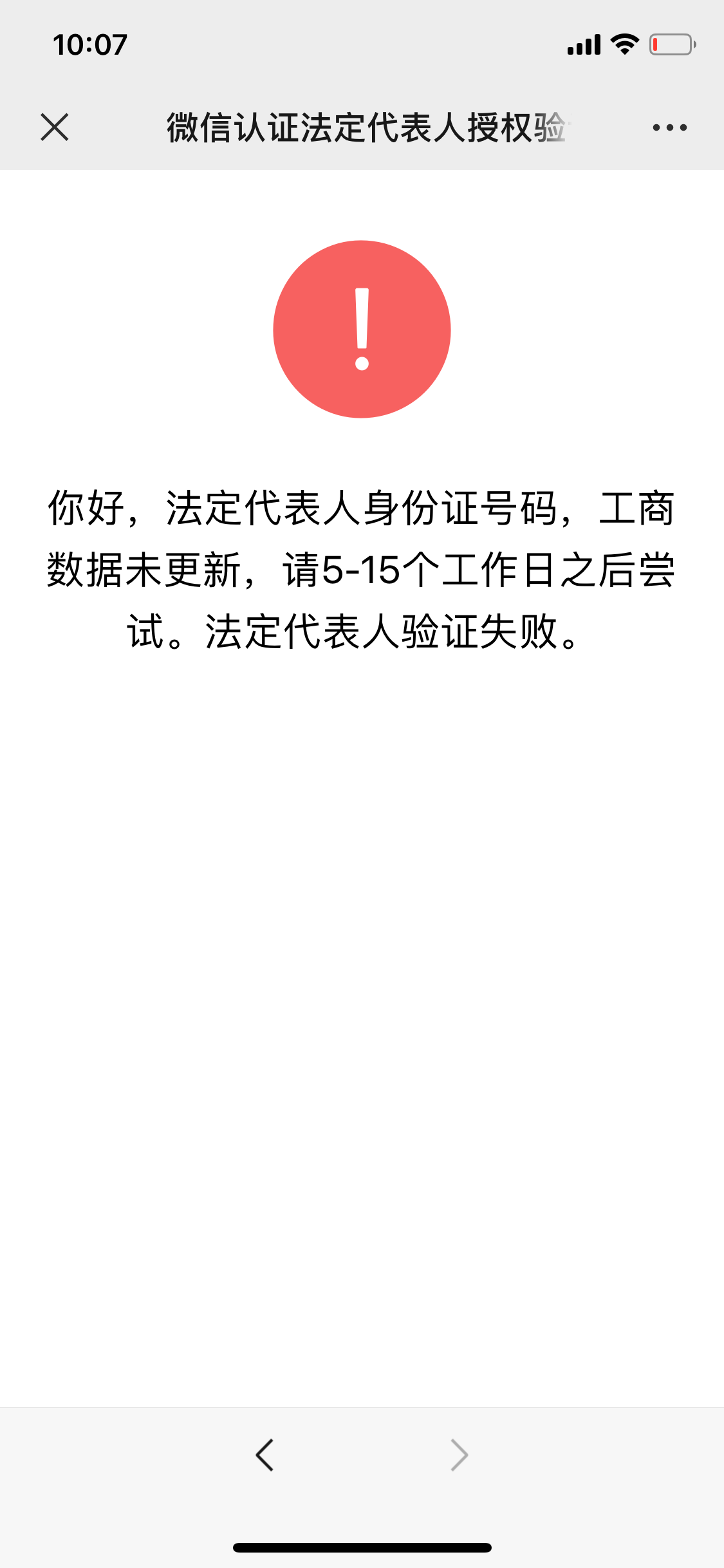 显示“你好法定代表人身份证号码,工商数据未更新,请5-15工作日之后尝试,法定代表人验证失败“