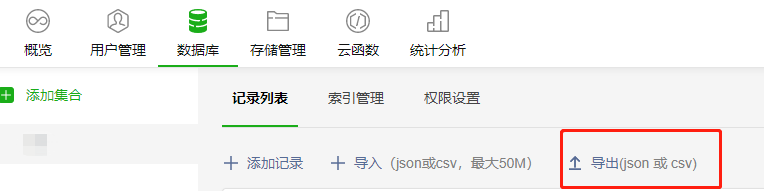 官方文档说云开发数据库已经支持数据导出功能,但是我的云数据库没有显示这个功能