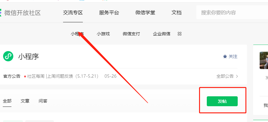 点击交流平台,即可看到绿色的发帖按钮,如图