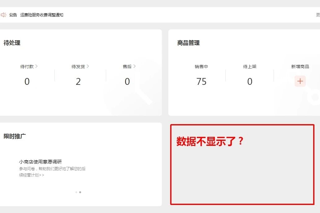店铺数据功能优化中,已暂停使用,恢复时间待定。