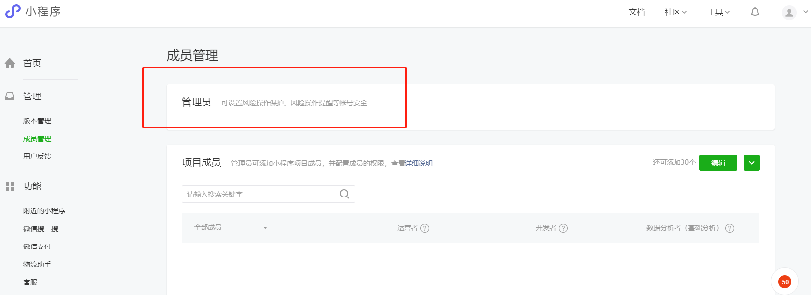 这个小程序是通过认证的服务号快速创建的,现在都要认证了?! 而且在成员管理里,竟然没有管理员。好奇怪