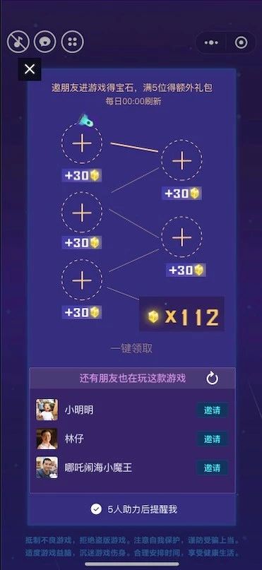 · 在游戏内,定向邀请未注册的特定微信好友加入游戏;(也可以是游戏自定义条件的已注册好友,例如7天未登陆游戏的好友)