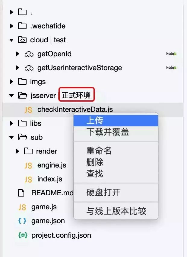 wx.modifyFriendInteractiveData接口在具体写入操作之前会默认执行开发者托管在JSServer上的一段代码,要求开发者使用开发者工具上传文件checkInteractiveData.js。