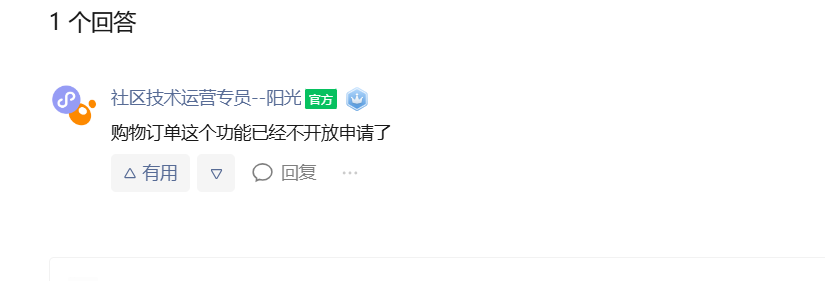 支付时提示违规,由于通知中心内无相关的通知,根据社区的回答,先试着开通购物订单,开通时不符合类目,只能发邮件进行申请。