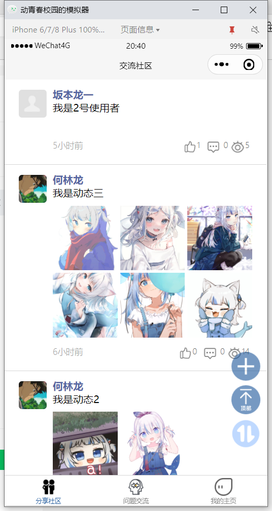 如图第一个动态是有一张图的,是手机端发送,电脑端就不能显示。同样,在手机上端能显示,而其余电脑端上传的就不能显示