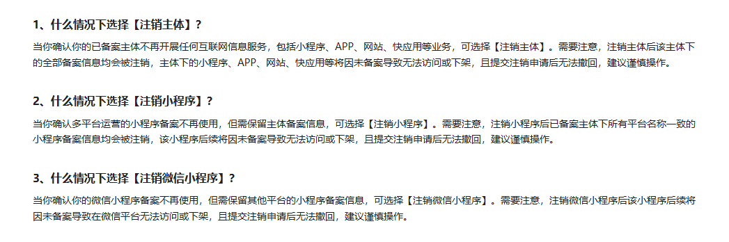 选择【注销微信小程序】备案信息,对原主体影响最小,再用新主体重新提交备案订单。