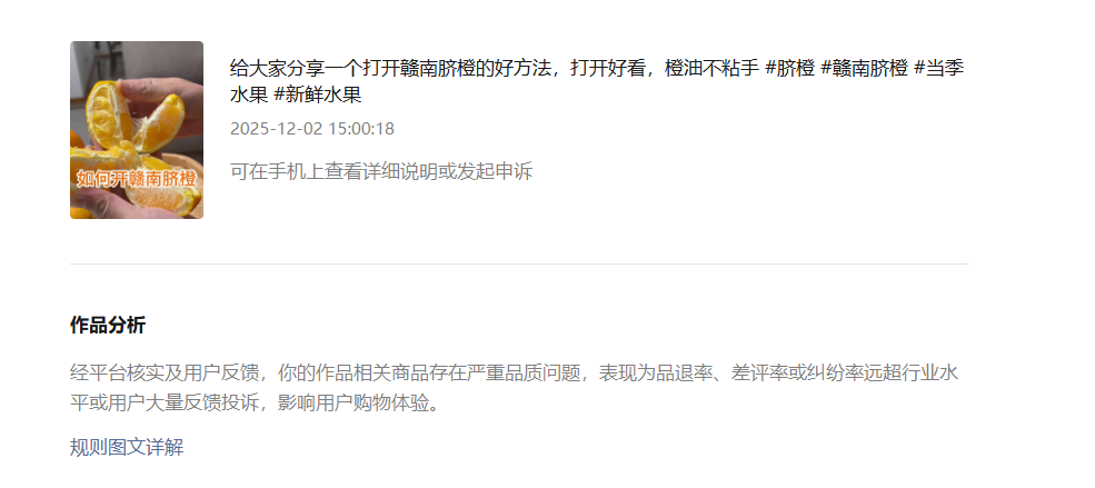 您好!关于您咨询的“视频号挂店铺商品链接,店铺商品好评率100%,没有任何的售后问题,视频号说有严重质量问题?”的问题,为您说明如下:经核实,作品内容质量不符合[《微信视频号运营规范》](https://weixin.qq.com/cgi-bin/readtemplate?t=weixin_agreement&s=video),目前暂不适合推荐。