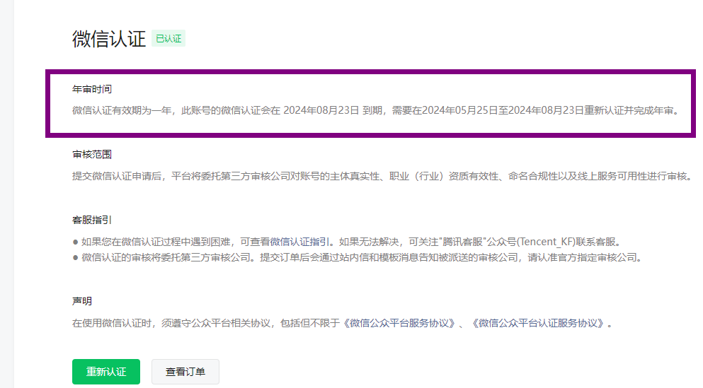 小程序也需要年审的,年审时间小程序平台里面也是能看到的