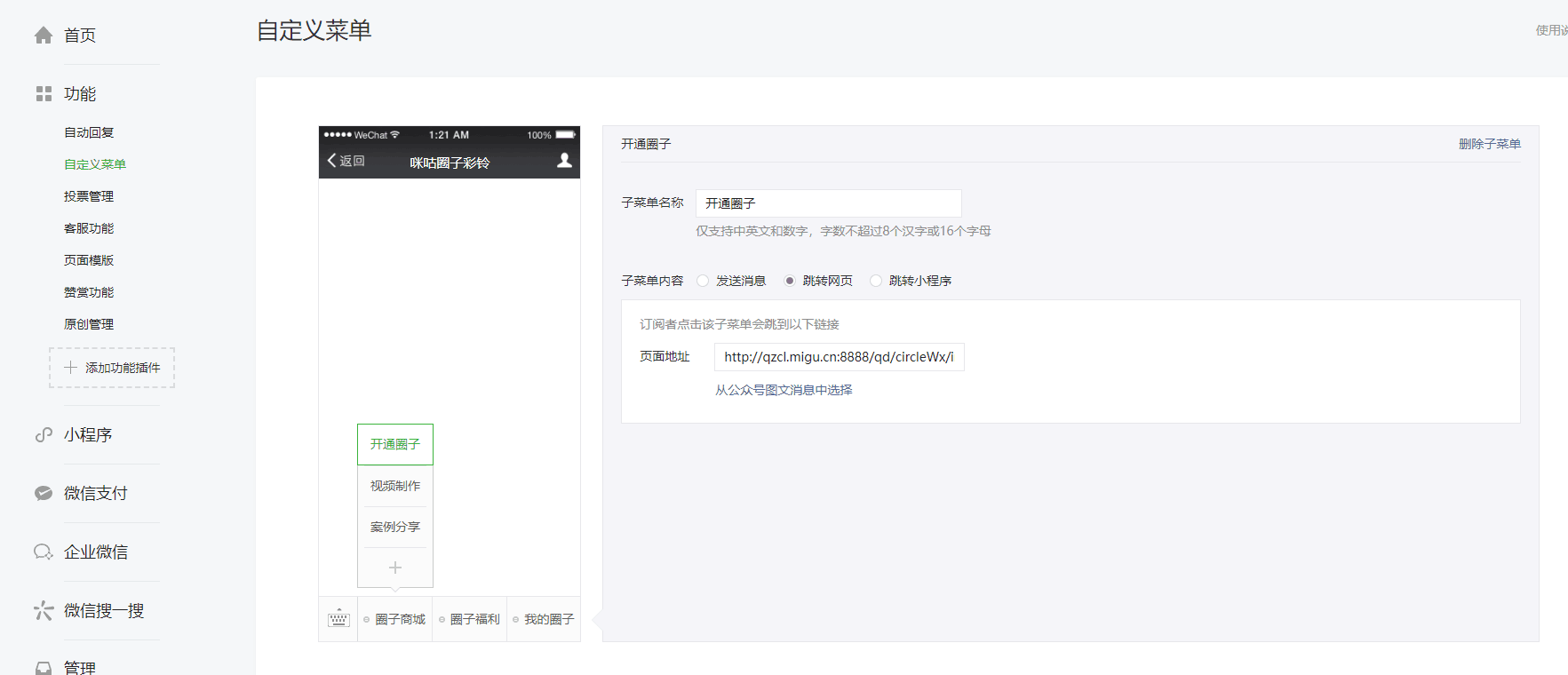 公众号微信后台菜单修改后24小时后没有生效?非API自定义菜单 求问如何设置能改变链接时间。取消关注并重新关注公众号后。链接还是未改变。文档写的修改后24小时。上周五修改的。今早还是一样