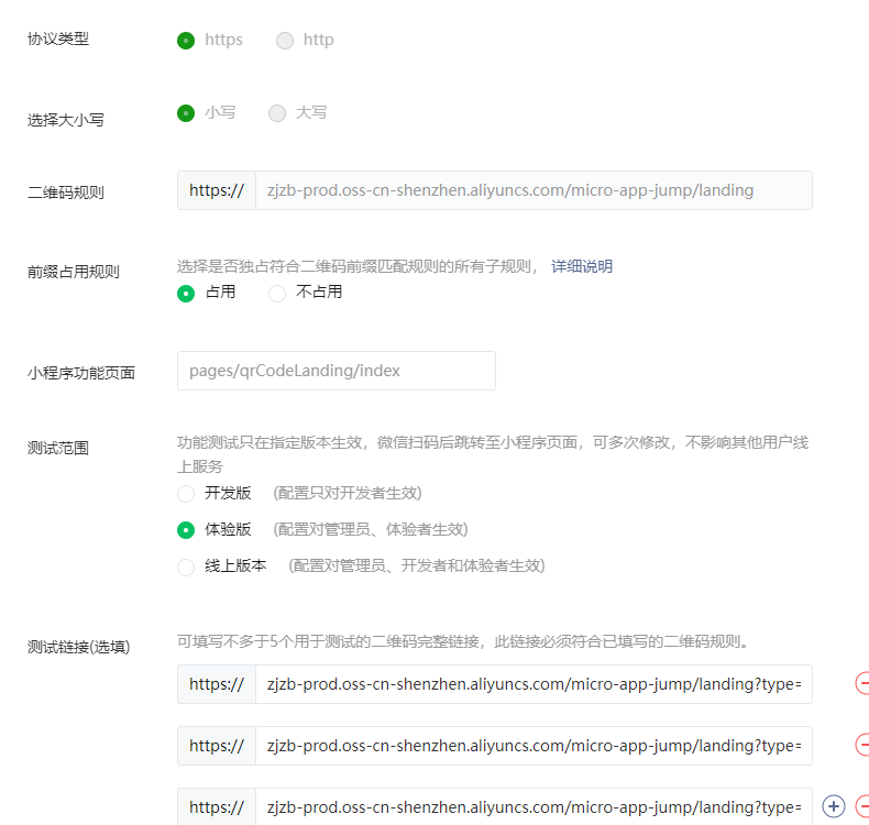配置了普通链接二维码的配置,可以通过后置摄像头扫一扫进入,但是微信内长按识别就显示的是链接,无法进入到小程序中。