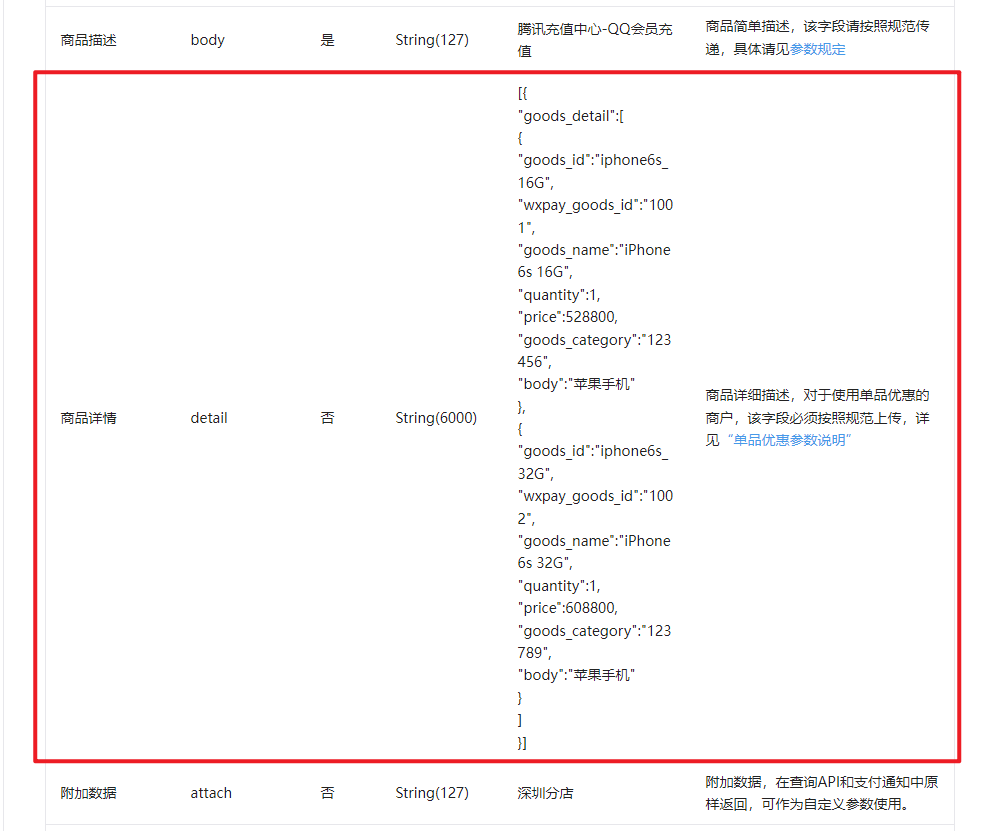 微信支付native接入怎么获取detail数据? 统一下单的时候提交了detail数据,但是异步通知里面没有detail数据,查询订单状态里面也获取不到detail数据
