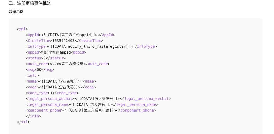 - 接口地址:https://developers.weixin.qq.com/doc/oplatform/Third-party_Platforms/Mini_Programs/Fast_Registration_Interface_document.html
