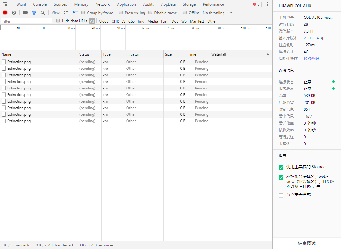 我建议可以设置请求超时,然后执行fail方法,不至于一直在pending,请求状态。wx getImageInfo。 没有执行fail, success, complete任何一个