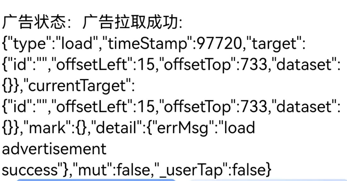 然后,在广告加载成功和失败里面,把文字打印出来,发现企业微信内,也是拉取广告成功的,就是不展示广告?