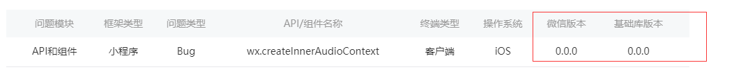 | 小程序 | Bug | wx.createInnerAudioContext | 客户端 | iOS | 0.0.0 | 0.0.0 |